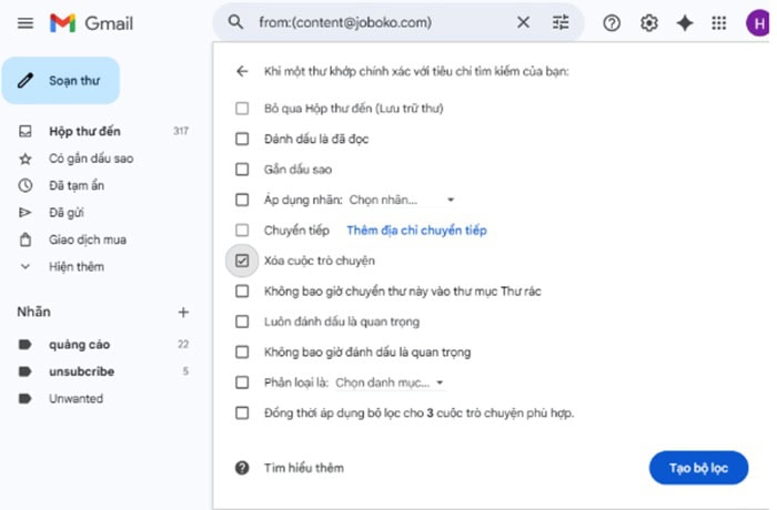 Cách lọc và xóa email rác, email quảng cáo hàng loạt