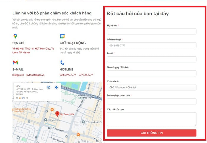 – Bước 4: Sau khi gửi biểu mẫu, đội ngũ tư vấn của GCS Việt Nam sẽ liên hệ trực tiếp để hỗ trợ lựa chọn gói dịch vụ phù hợp, đồng thời hướng dẫn kích hoạt tài khoản và triển khai hệ thống.