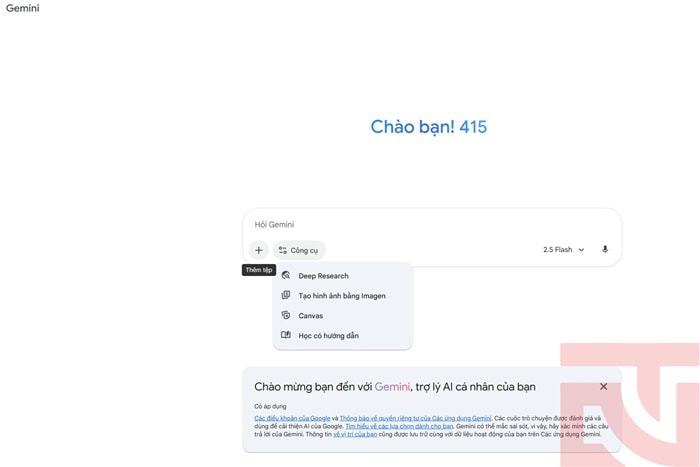 – Bước 1: Đầu tiên, bạn cần truy cập vào giao diện chính của Gemini.