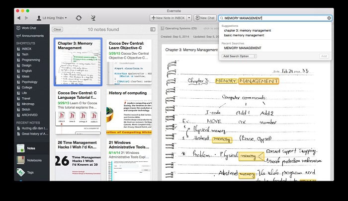 Điểm nổi bật nhất của Evernote là khả năng lưu trữ gần như toàn diện. Từ văn bản được định dạng đẹp mắt, hình ảnh, PDF, tài liệu Word/Excel, video, và thậm chí là trang web đầy đủ. Đặc biệt, Evernote còn có khả năng tìm kiếm bao gồm cả tìm kiếm trong nội dung của file PDF và văn bản viết tay trong hình ảnh.