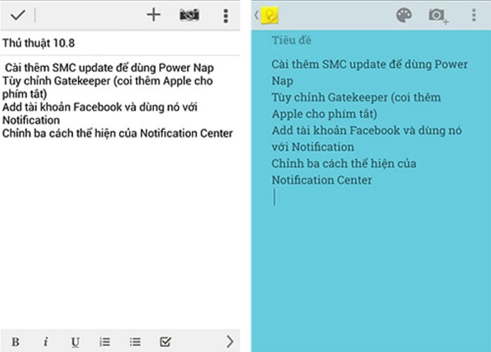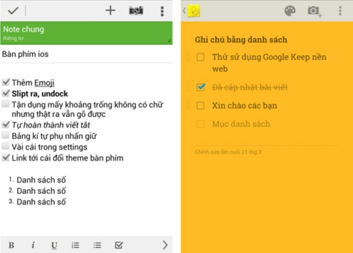 Tính năng ghi chú và soạn thảo giữa Google Keep vs Evernote được thể hiện rõ rệt nhất: