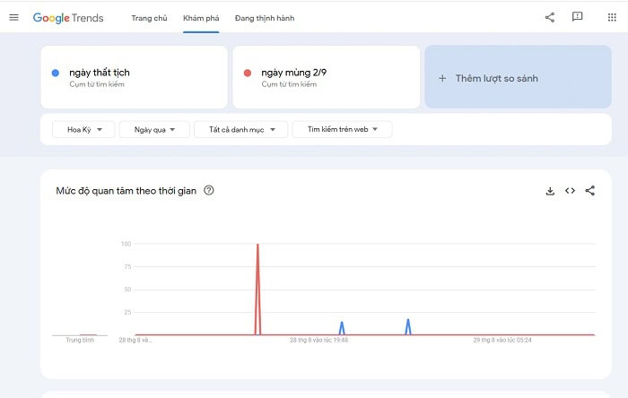 • Phân tích xu hướng từ khóa: Công cụ này giúp bạn dễ dàng so sánh mức độ phổ biến của các từ khóa khác nhau. Từ đó xác định đâu là chủ đề được quan tâm nhất.