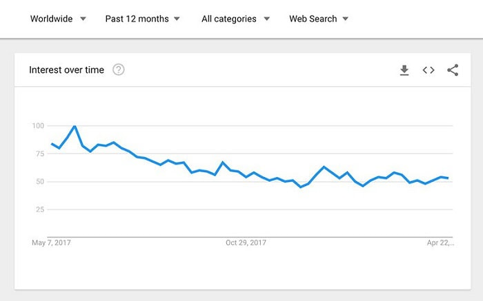 Google Trends không chỉ giúp bạn tìm ra một xu hướng, mà còn cho phép bạn theo dõi sự phát triển của nó theo thời gian.