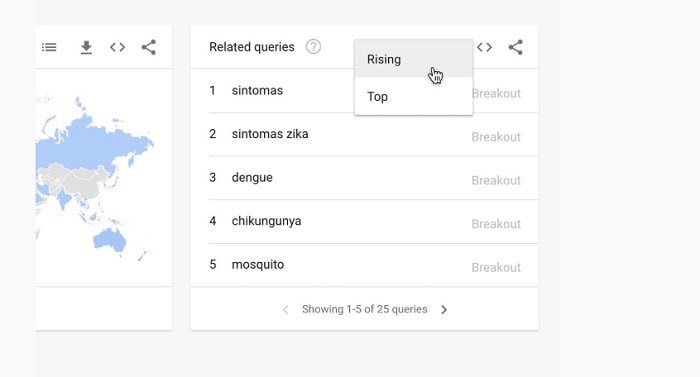 Tương tự như truy vấn liên quan, nhưng thay vì hiển thị các từ khóa cụ thể, Google Trends sẽ gợi ý các chủ đề rộng hơn có liên quan đến truy vấn của bạn. Để biết được tính năng Related Topics này, bạn chỉ cần chú ý đến danh sách các chủ đề đang tăng trưởng hoặc đang thịnh hành nhất.