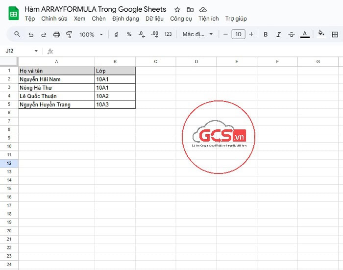 Hàm ARRAYFORMULA trong Google Sheets | Hướng dẫn sử dụng từ A-Z