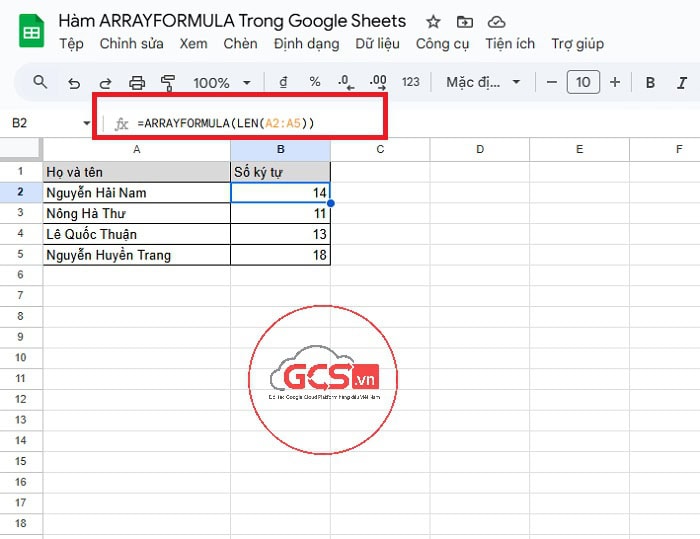 Hướng dẫn sử dụng hàm ARRAYFORMULA trong Google Sheets