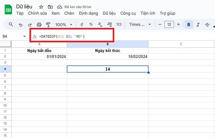 ham datedif trong google sheets