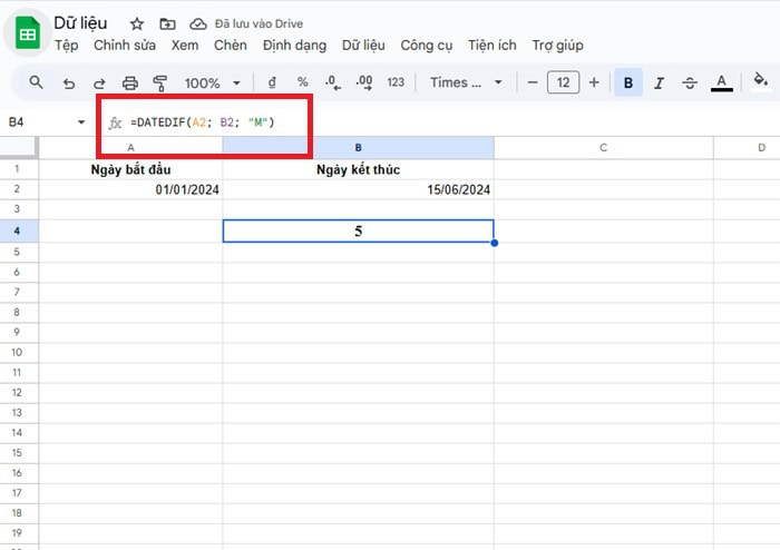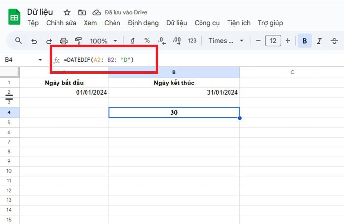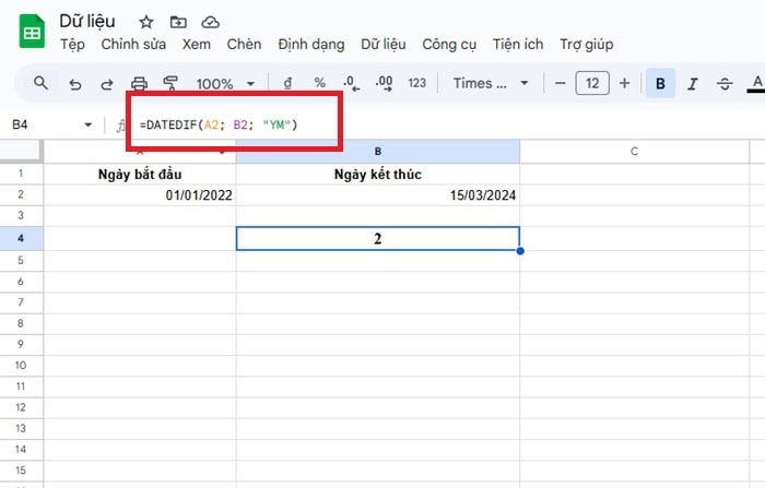 àm DATEDIF trong Google Sheets