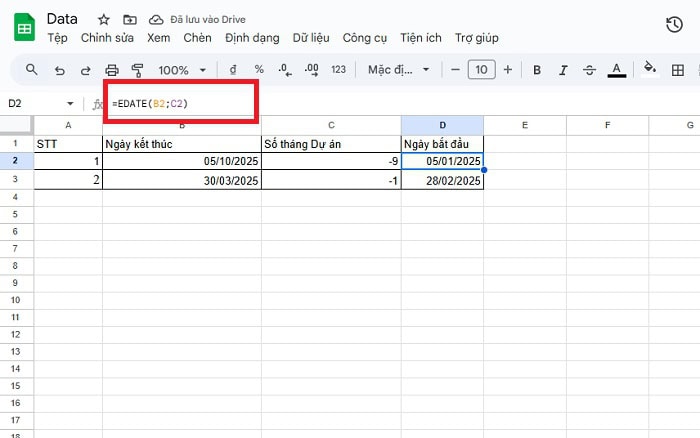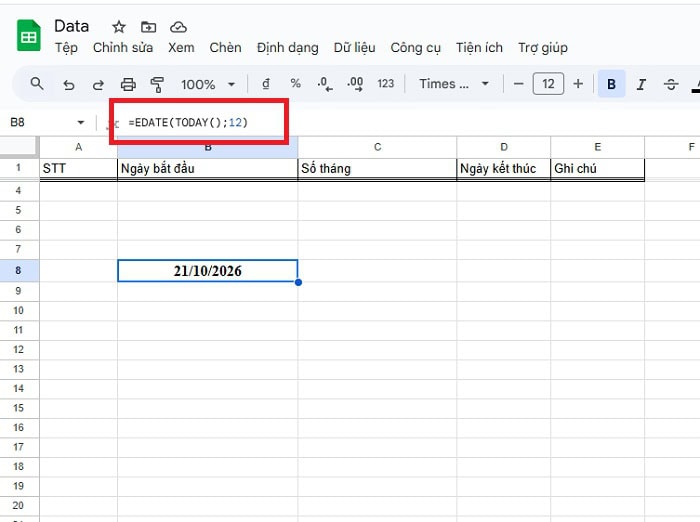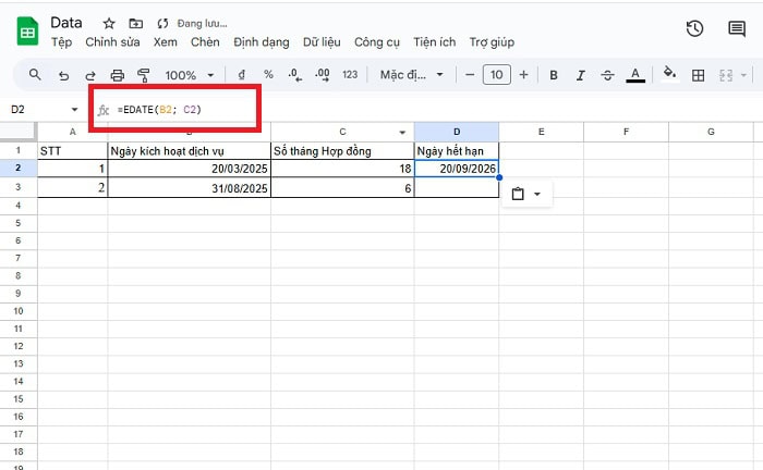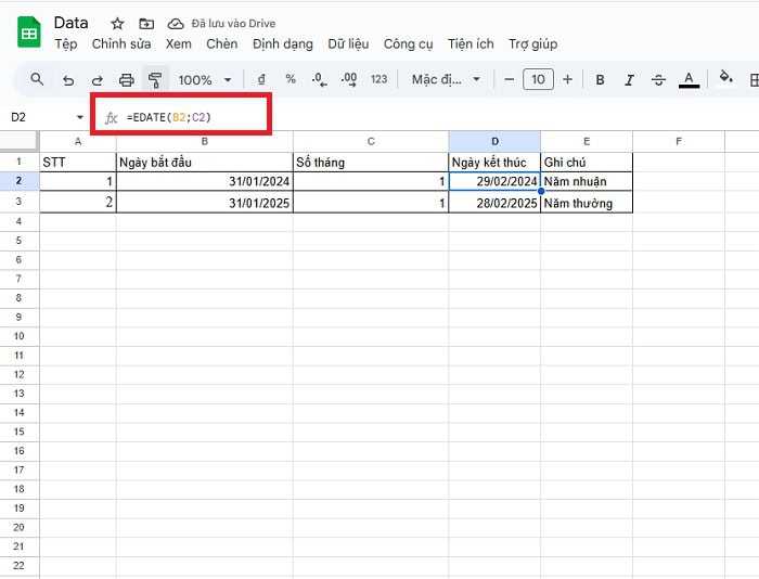 Cách sử dụng hàm EDATE trong Google Sheets với ví dụ minh họa