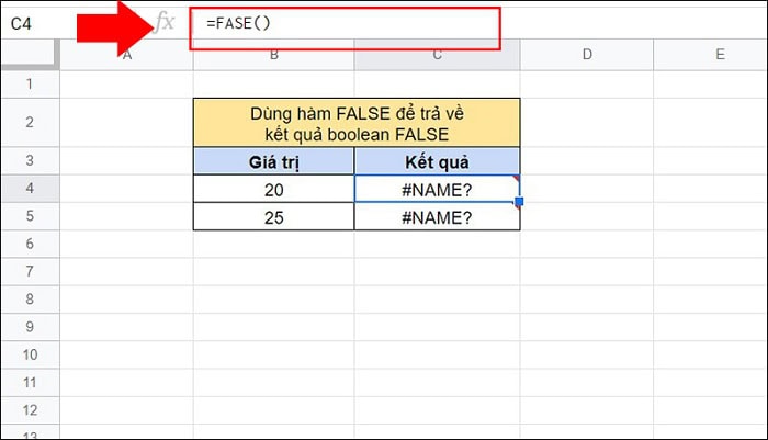 Cách khắc phục lỗi #NAME? khi sử dụng hàm FALSE, đó chính là: