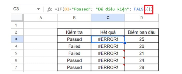Một số lỗi thường gặp trong hàm FALSE trong Google Sheets
