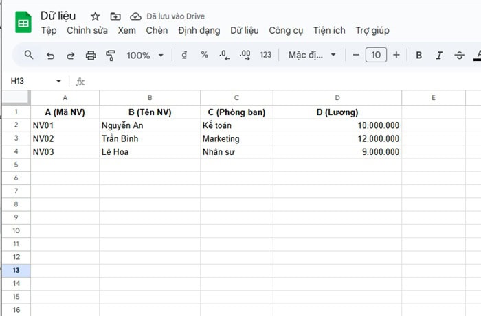 Thông thường, khi bạn tham chiếu trực tiếp đến vùng dữ liệu (ví dụ A1:A10), việc chèn hoặc xóa hàng/cột có thể khiến công thức bị thay đổi hoặc lỗi #REF!. Khi sử dụng hàm INDIRECT, vùng dữ liệu được khai báo dưới dạng chuỗi văn bản như “A1:A10”. Google Sheets sẽ luôn tham chiếu đúng phạm vi này, kể cả khi bạn chỉnh sửa các hàng hoặc cột xung quanh.