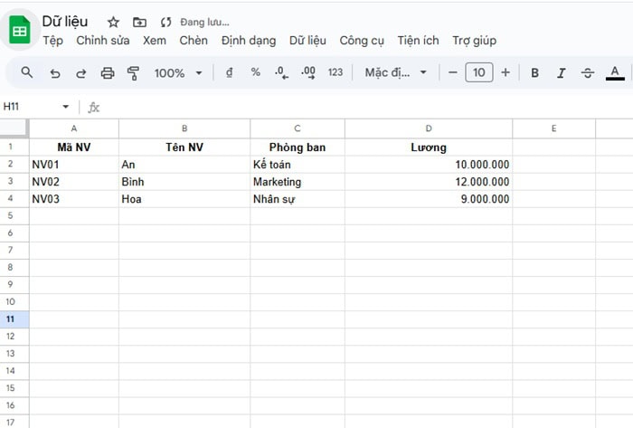 → Google Sheets hiểu Luong là tên hàm hoặc biến, nhưng không tồn tại → lỗi #NAME?