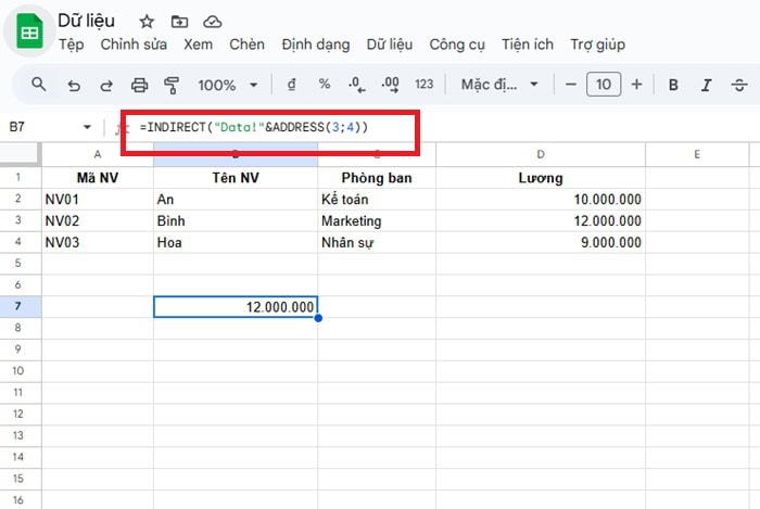 Hàm INDIRECT trong Google Sheets dùng để làm gì?
