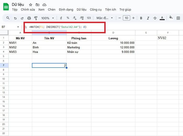 MATCH thường dùng để xác định vị trí dòng hoặc cột. Khi đi cùng INDIRECT, bạn có thể dò tìm vị trí trong vùng dữ liệu động.