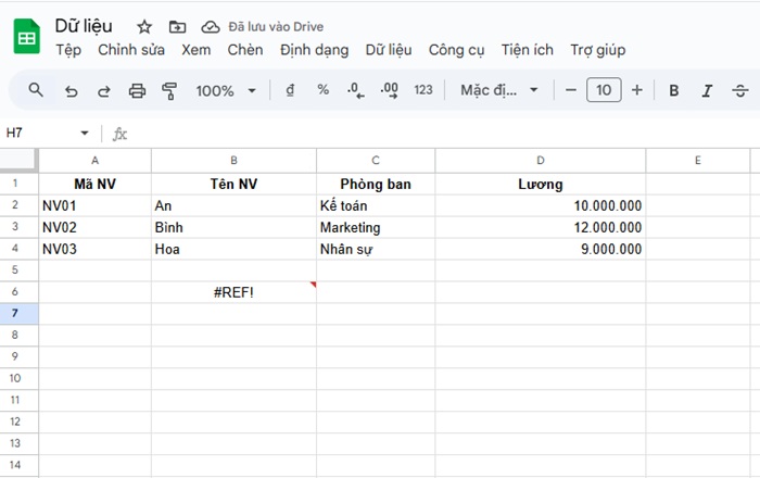 Dưới đây là hai lỗi thường gặp nhất khi dùng hàm INDIRECT trong Google Sheets, kèm theo nguyên nhân và cách khắc phục chi tiết để bạn dễ hiểu và dễ xử lý.
