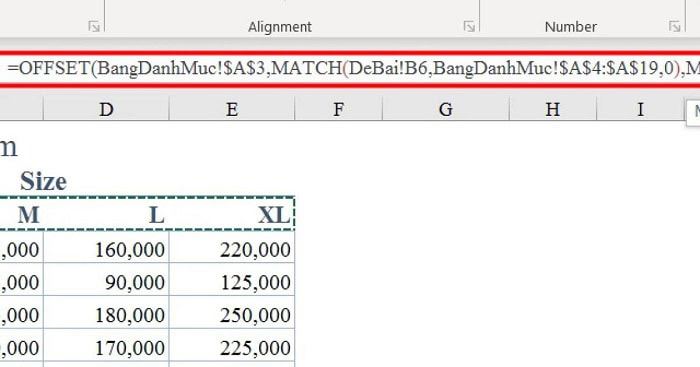 • Kiểm tra lại công thức theo cú pháp chuẩn: =OFFSET(tham_chiếu_ô, MATCH(khóa, dải, 0), cột_bù_trừ). Bạn cần đảm bảo các dấu ngoặc đơn và dấu phẩy được đặt đúng vị trí.
