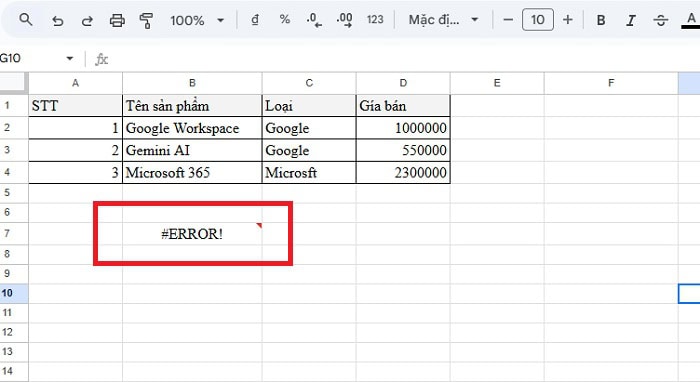 Lỗi #ERROR! thường là lỗi cú pháp hoặc lỗi bên trong của Google Sheets khi nó không hiểu cách phân tích công thức.