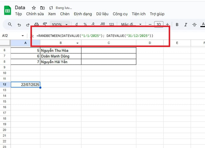 Hàm RANDBETWEEN trong Google Sheets là gì?