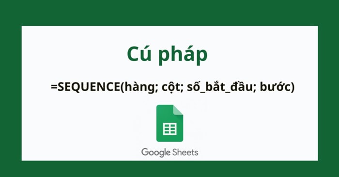 Cú pháp chuẩn của hàm SEQUENCE trong Google Sheets như sau: