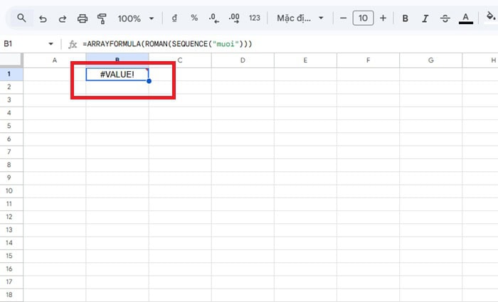 Ví dụ: Bạn nhập =SEQUENCE(“mười”) thay vì =SEQUENCE(10).