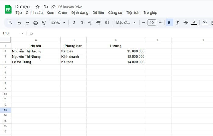 *Yêu cầu: Xác định mức lương của Nguyễn Thị Nhung thuộc phòng Kinh doanh.