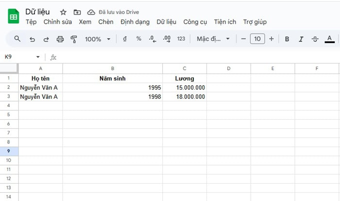*Yêu cầu: Tìm lương của Nguyễn Văn A sinh năm 1995.