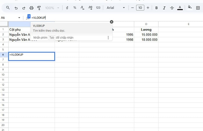Hàm VLOOKUP trong Google Sheets