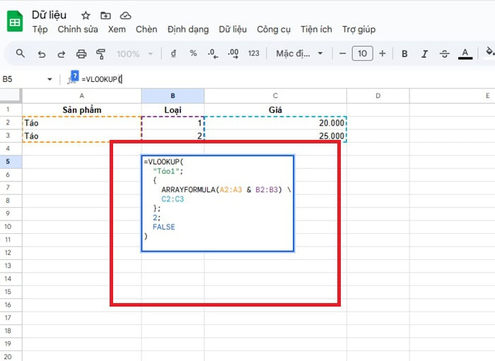 ham vlookup nhieu dieu kien trong google sheets
