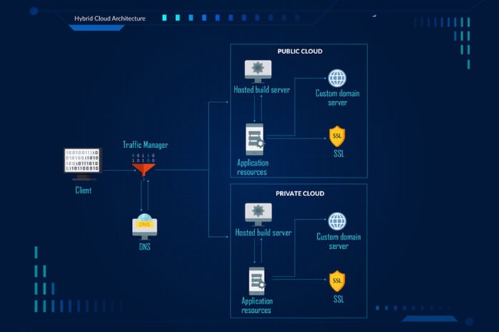 Doanh nghiệp có thể lưu trữ những dữ liệu hoặc hệ thống quan trọng trong Private Cloud để đảm bảo tính bảo mật. Đồng thời tận dụng Public Cloud khi cần mở rộng nhanh tài nguyên hoặc chạy các workload có tính co giãn cao.