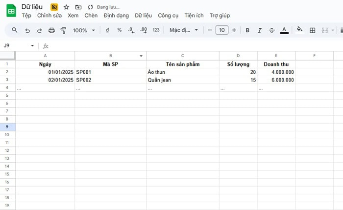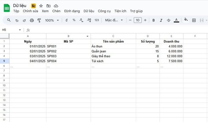 Bảng dữ liệu nguồn – Tên sheet: Sales_Data