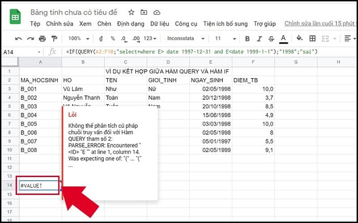 Khi kết hợp hai hàm này, đặc biệt là khi xử lý các chuỗi truy vấn phức tạp, việc gặp lỗi là điều khó tránh khỏi. Dưới đây là một số lỗi cơ bản khi kết hợp hàm QUERY và hàm IF trong Google Sheets, các bạn nên chú ý: