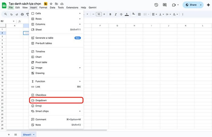 Cách tạo danh sách lựa chọn để quản lý công việc hiệu quả trên Google Sheets như sau: