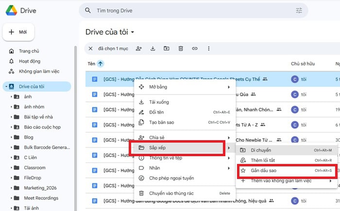 Trong hệ thống dữ liệu lớn, tính năng gắn dấu sao giúp tối ưu tốc độ làm việc trong cách sắp xếp file trên Google Drive.