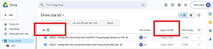 Cách sắp xếp file trên Google Drive theo các tiêu chuẩn