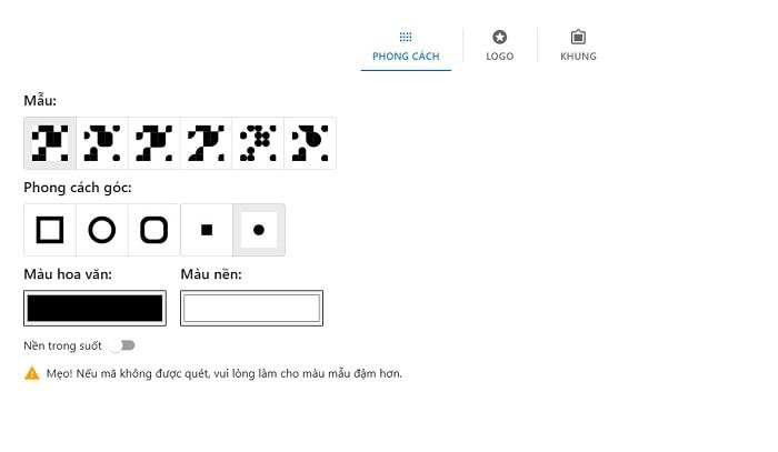 - Thiết kế mã QR: Bạn có thể thay đổi màu sắc của mã, thêm các hình dạng đặc biệt cho các góc hoặc khối của mã.