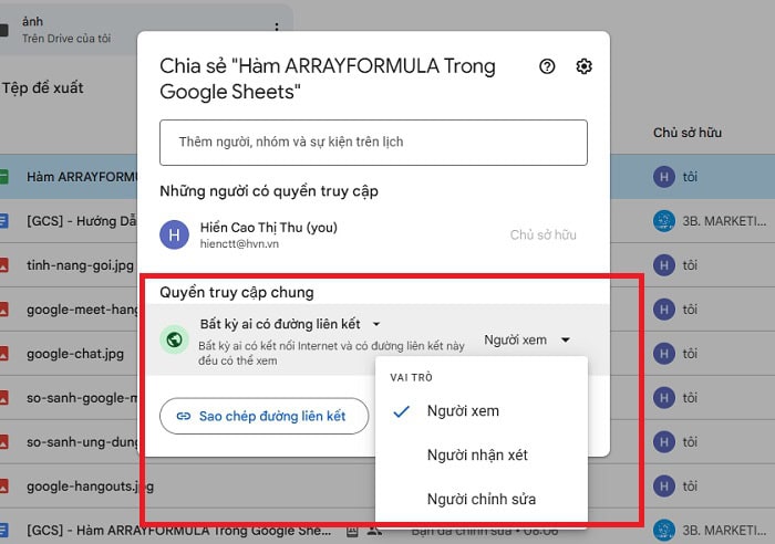 Chọn đúng quyền truy cập (View / Comment / Edit)