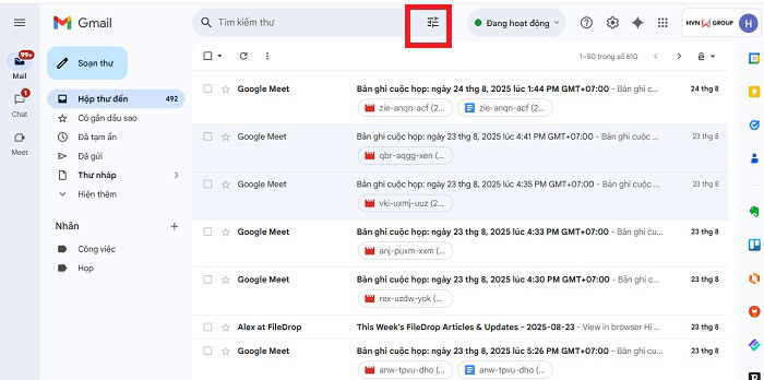 Lợi ích lớn của lưu trữ là cách tìm lại thư đã lưu trữ trong Gmail rất trực quan, thông qua menu Tất cả thư hoặc thanh tìm kiếm. Bạn có thể tìm theo tên người gửi, tiêu đề, từ khóa hoặc dùng bộ lọc nâng cao. Nhờ đó, việc tra cứu hóa đơn, hợp đồng hay email cũ trở nên nhanh chóng và không phải mò trong hàng ngàn thư trong Hộp thư đến nữa.