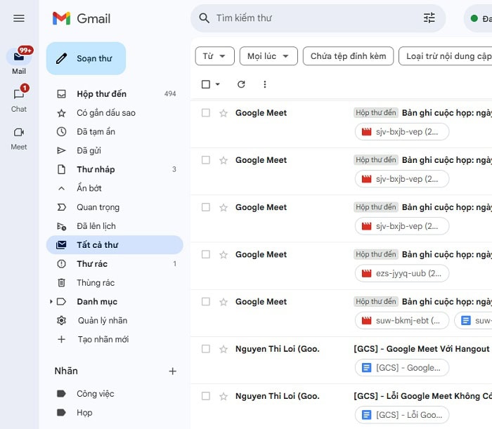 Sau đó, bạn gán nhãn cho email và lưu trữ chúng vào thư mục. Khi cần tìm lại, bạn chỉ cần nhấp vào nhãn tương ứng ở thanh menu bên trái và tất cả các email đã lưu trữ có nhãn đó sẽ hiển thị. Cách này giúp bạn quản lý email theo chủ đề, khoa học và dễ tìm kiếm hơn nhiều so với việc chỉ tìm kiếm trong thư mục Tất cả thư.
