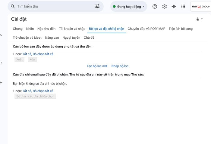 Truy cập vào Cài đặt >> Bộ lọc và địa chỉ đã chặn >> Tạo bộ lọc mới >> Thiết lập các tiêu chí >> Chọn hành động “Lưu trữ” và “Bỏ qua Hộp thư đến (Lưu trữ)”.