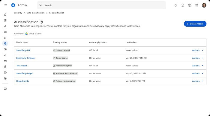Tuy nhiên, các mô hình AI sẽ được đào tạo riêng biệt theo nhu cầu của từng khách hàng. Tức là, nó sẽ tự động xác định đồng thời phân loại và gắn nhãn các tệp trong Google Drive. Các nhãn này sau đó có thể được sử dụng để kích hoạt các chính sách bảo mật như ngăn chặn mất dữ liệu (DLP), quản lý vòng đời tệp, cũng như hỗ trợ các trường hợp kiểm toán và báo cáo.