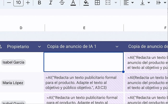 chức năng AI trong Trang tính