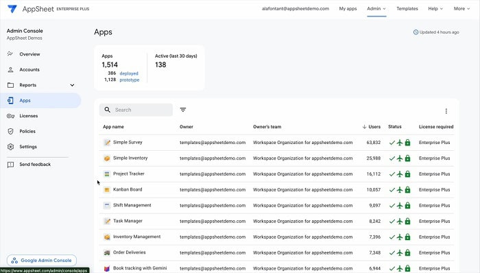 Google đang bổ sung tính năng hỗ trợ bởi AI Gemini vào AppSheet Admin Console để giúp quản trị viên nhanh chóng hiểu về các ứng dụng AppSheet được tạo trong tổ chức. Tính năng này giúp quản trị viên nhanh chóng hiểu rõ chức năng của từng ứng dụng mà không cần điều tra thủ công, tiết kiệm thời gian quý báu và cải thiện khả năng giám sát quản trị (governance oversight).