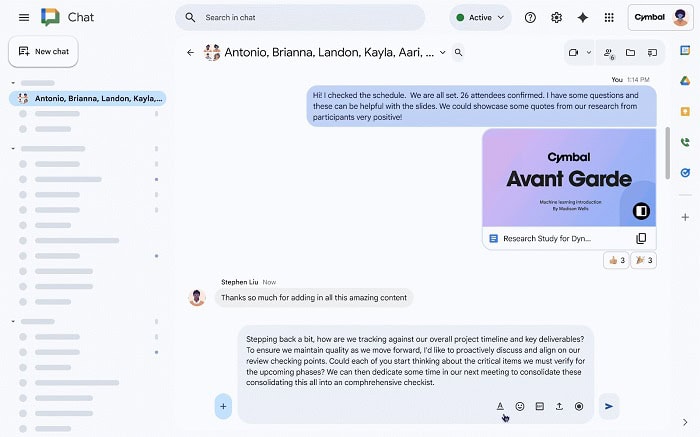 Google đang bổ sung khả năng sử dụng Gemini để tinh chỉnh (refine) tin nhắn ngay khi bạn đang soạn thảo trong Google Chat trên web. Bạn có thể dùng Gemini để cải thiện tin nhắn đang soạn thảo, tập trung vào các yếu tố: