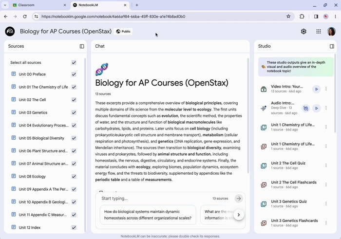 Google Classroom đã cập nhật, cho phép giáo viên gán các sổ tay công khai của NotebookLM vào bài tập trong Google Classroom. Thay đổi này giúp mở rộng đáng kể nội dung giáo dục mà giáo viên có thể sử dụng. Bo gồm cả các tài liệu được chia sẻ công khai, ví dụ như các sổ tay từ quan hệ đối tác với OpenStax.