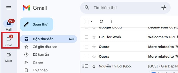 Còn với máy tính, bạn mở Gmail trên trình duyệt web, nhìn sang cột bên trái bạn sẽ thấy chữ Chat.  Bạn nhấn vào đó là đã vào được không gian nhắn tin.
